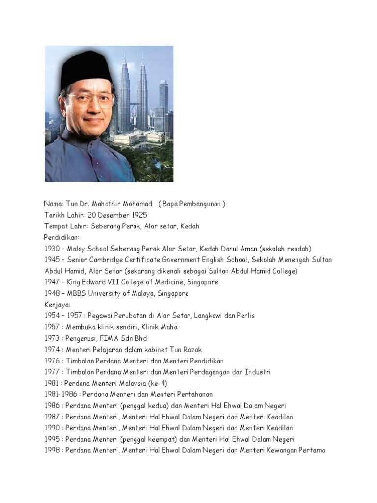 Related : Biodata Tun Dr Mahathir : Mahathir bin mohamadborn dec 20th, 1925, alor setar, kedah, malay states now in malaysiain full tun dr..