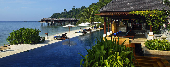 At pangkor laut resort, beautifully appointed villas set high amidst the hills, nestled within lush gardens or resting on stilts above the island's tropical waters.
