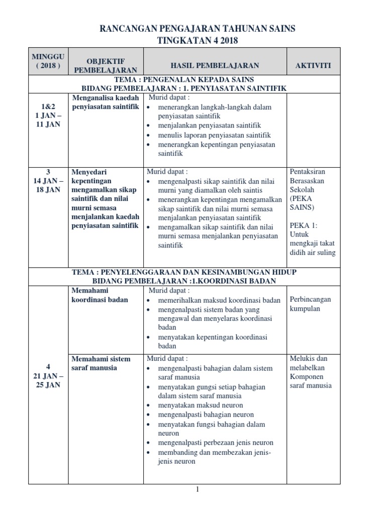 Sains Tingkatan 1 2018 / Rpt Sains Tingkatan 4 2018 / Berikut merupakan rpt sains tingkatan 1 bagi tahun 2018.